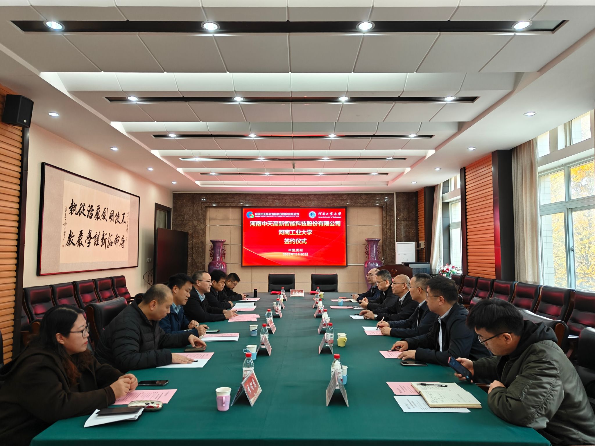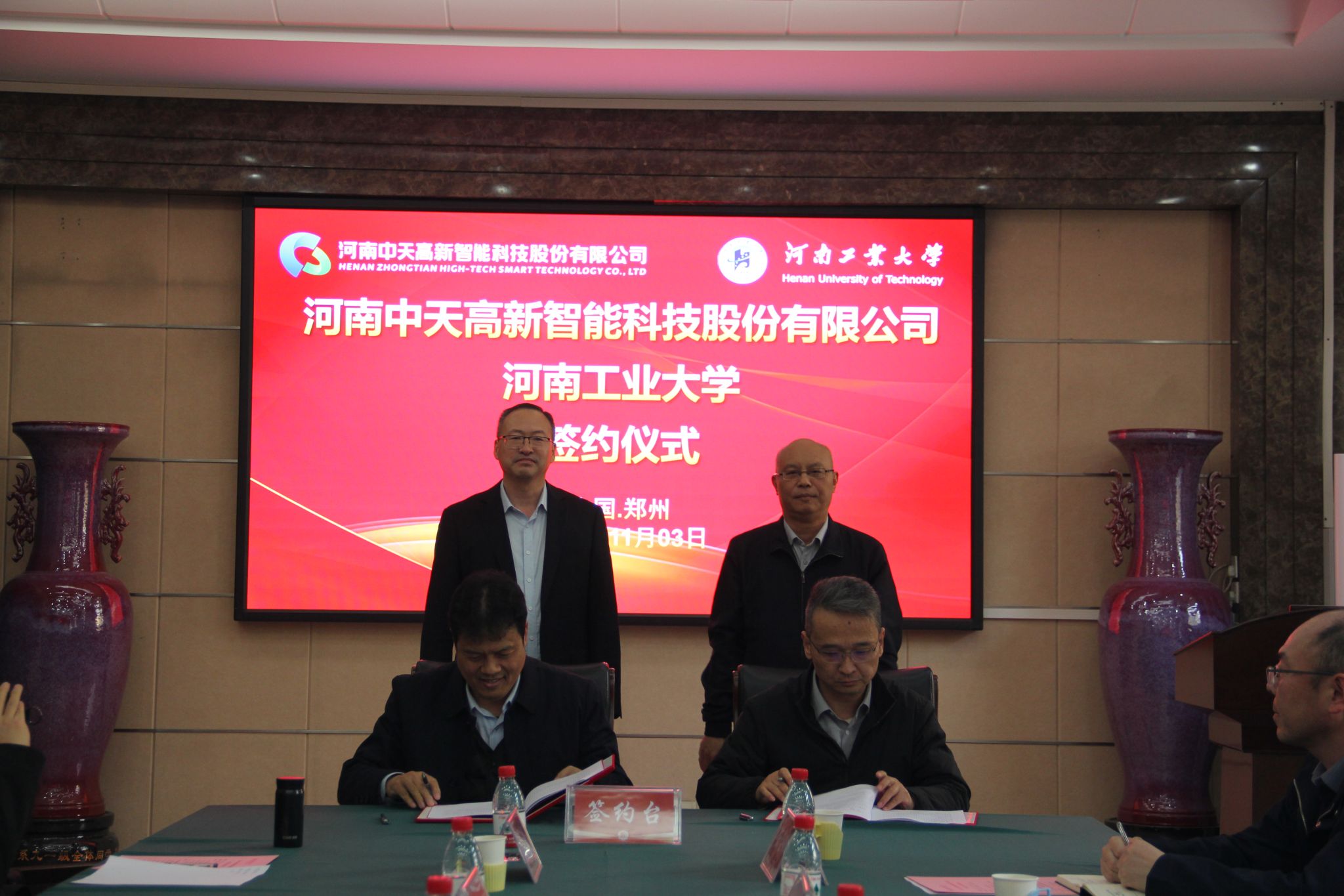 11月3日,河南工业大学与河南中天高新智能科技股份有限公司合作签约仪式在我校惟学楼隆重举行。河南工业大学副校长邓淼磊教授,信息学院院长张庆辉教授及相关负责同志;河南中天高新智能科技股份有限公司党委书记、董事长阎伟,党委委员、副总经理何保辉,交创智能科技公司等负责同志参加签约会议。