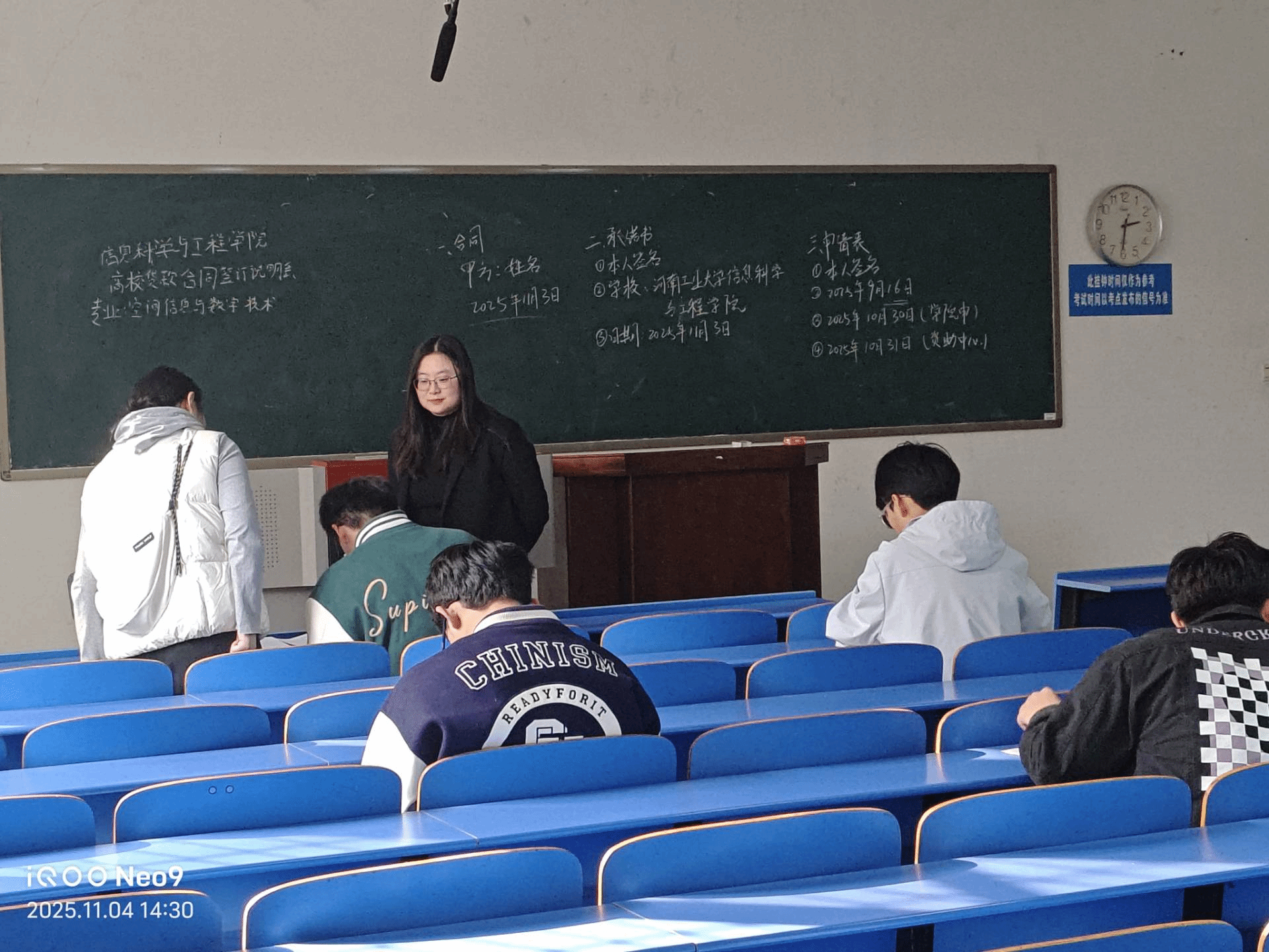 为贯彻落实国家关于高等教育资助政策的相关规定,增强学生的诚信意识和社会责任感,并帮助家庭经济困难的学生顺利完成学业。11月4日,信息科学与工程学院在4220、4221召开了2025年高校贷款合同签订仪式暨感恩励志教育宣讲会。资助专项负责老师杨繁、郑猛虎、生活权益部全体成员以及申请高校贷款的全体同学参加了宣讲会,宣讲会由郑猛虎主持。
