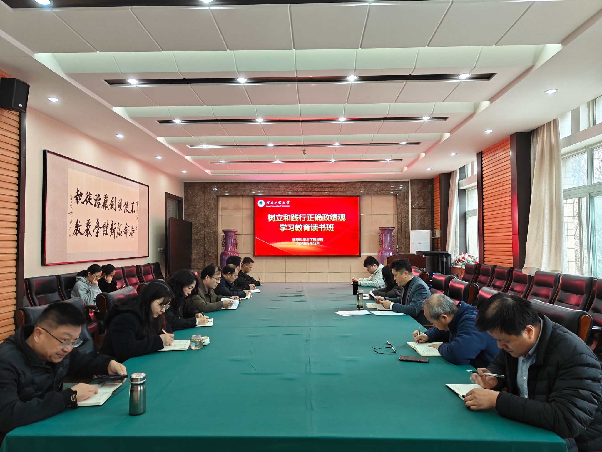 3月24日上午,信息科学与工程学院在惟学楼6225会议室举办树立和践行正确政绩观学习教育读书活动。学院领导班子成员、全体中层干部参加学习,会议由学院党委书记郭晓旻主持。