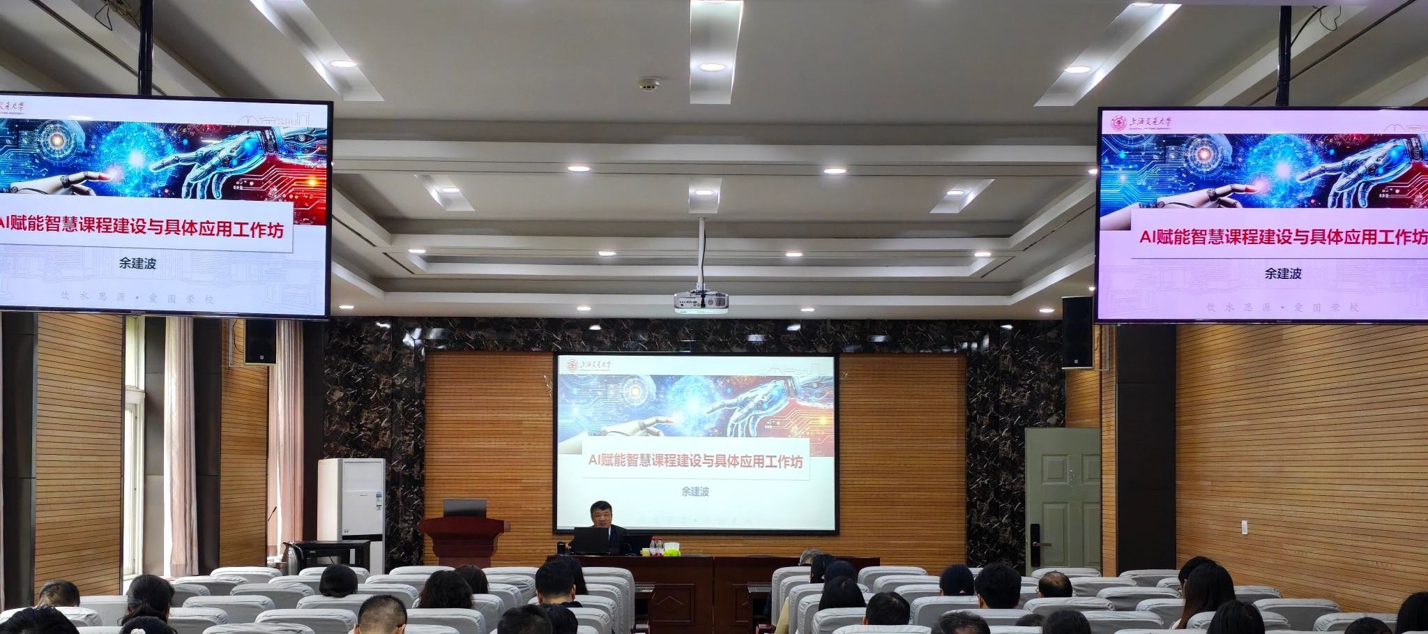 工作坊分两个阶段进行。11日上午,余老师围绕教育部智慧课程建设要求与AI技术应用进行专题报告,聚焦智慧课程建设顶层设计,深度解读教育部智慧课程建设内涵与核心要领,系统梳理智慧课程分级认定标准,全面诠释了“师-生-机-环”四元互动教学新模式。并通过专题分享,展示了国内外高校智慧课程建设的典型案例,为参会老师提供了可参考的实践模板和成功经验。