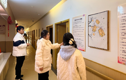 抵达现场后,志愿者们手持学院院旗在服务中心门前合影留念,鲜艳的院旗见证着青春志愿的初心。首日,在工作人员引导下,志愿者实地走访老人居所、活动大厅及康复区域,细致了解中心运营模式与老人生活需求,工作人员结合案例讲解老年护理常识与应急处理技能,志愿者认真记录要点,为后续服务筑牢基础。