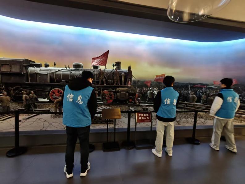 在“风起云涌”展区,京汉铁路工人大罢工的历史场景吸引团队成员驻足沉思。玻璃展柜中陈列的旧草鞋、煤油灯等实物,搭配逼真的人物模型,生动还原了1923年郑州作为工人运动中心的壮阔历程,直观展现出早期工人阶级为争取解放挺身而出的无畏勇气。在吉鸿昌烈士纪念厅,团队成员认真研读这位扶沟籍抗日英雄的成长历程,“恨不抗日死,留作今日羞”的英雄绝唱,彰显出英烈忠于祖国、视死如归的崇高情怀。