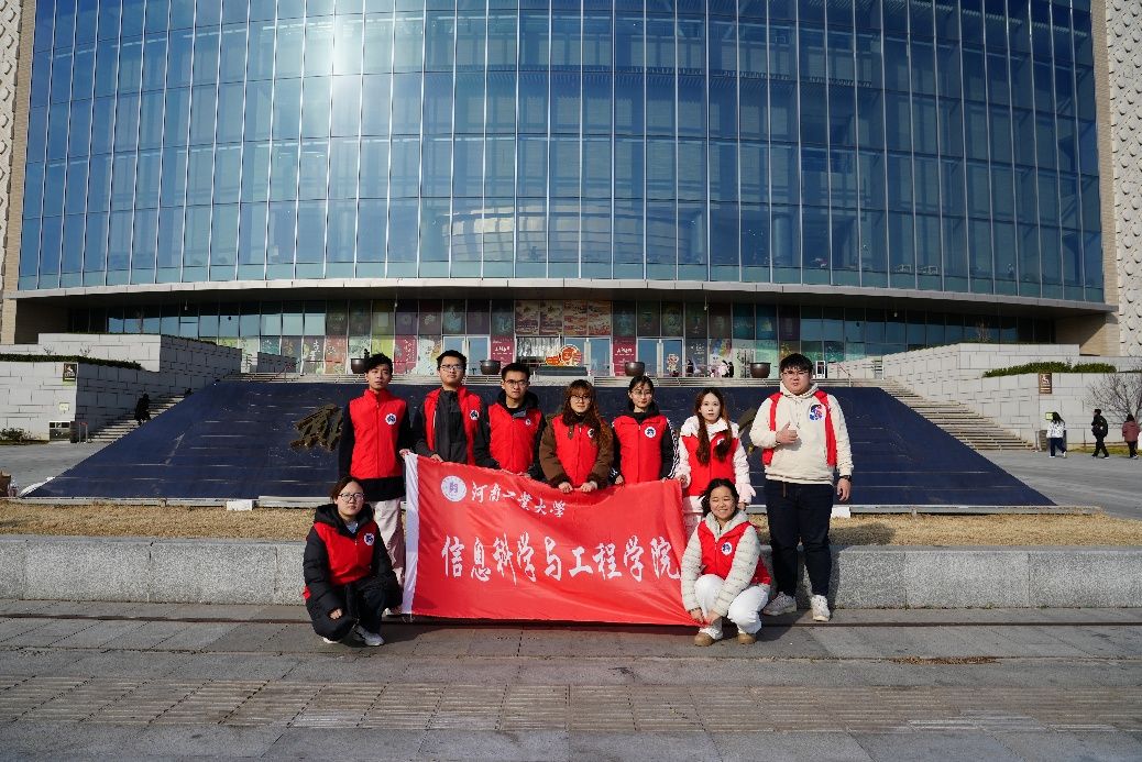 2026 年 1 月 20 日下午 2 时 30 分,河南工业大学信息科学与工程学院 “追梦队” 团队9 名队员来到河南省郑州市博物馆,开展以 “探寻文物密码,感悟中原文明” 为主题的寒假社会实践活动,通过实地观摩、史料研读、交流探讨等形式,深入挖掘文物背后的历史价值,传承和弘扬中华优秀传统文化。