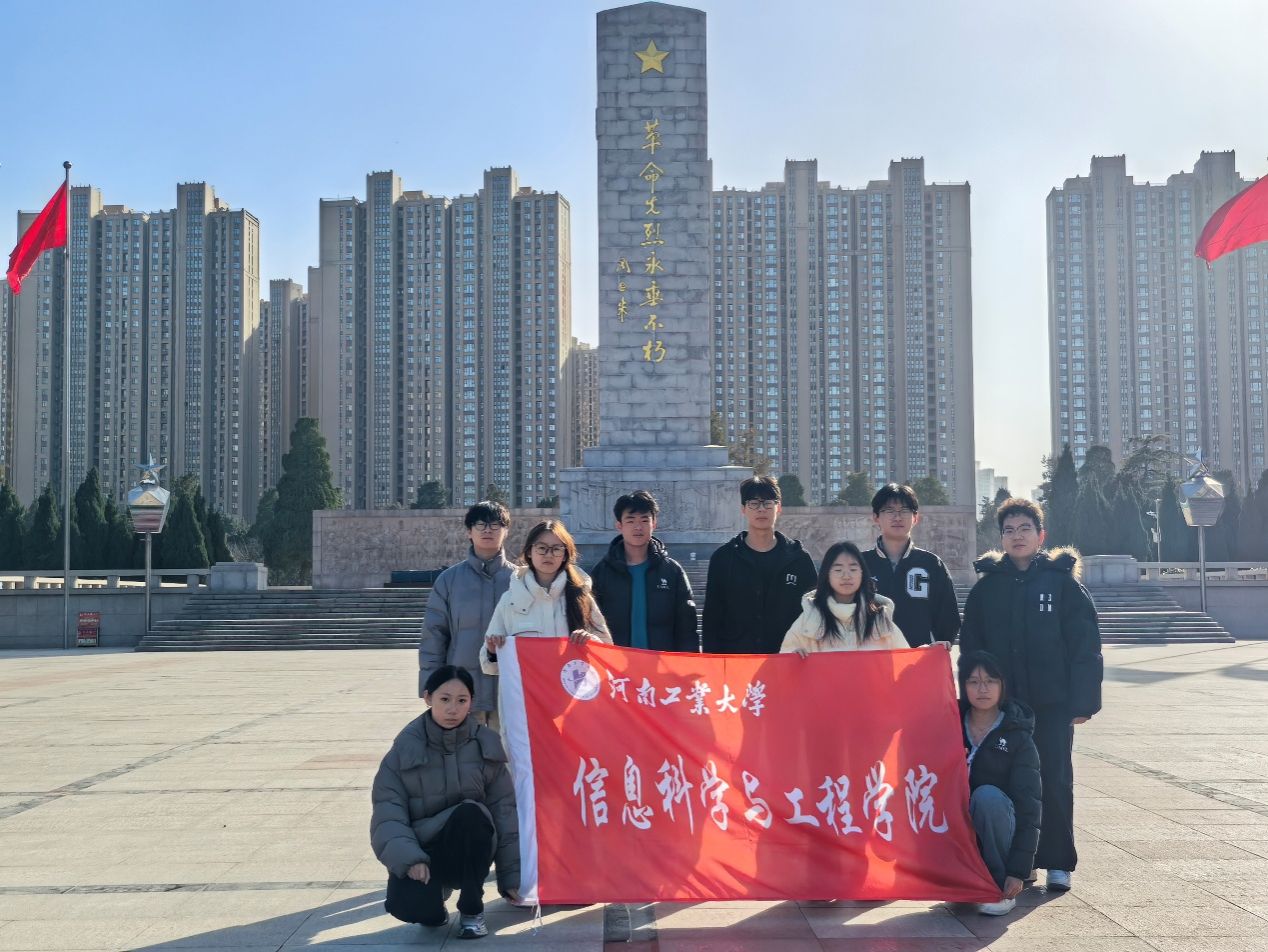 2026年1月31日下午2时,河南工业大学信息科学与工程学院“豫见英烈”社会实践团队来到了河南省郑州市二七区丹青路11号郑州烈士陵园开展寒假社会实践活动。本次活动以“缅怀英烈,薪火相传”为主题,通过扫墓祭奠、清扫墓园、学习事迹等环节,传承红色基因,厚植爱国情怀。
