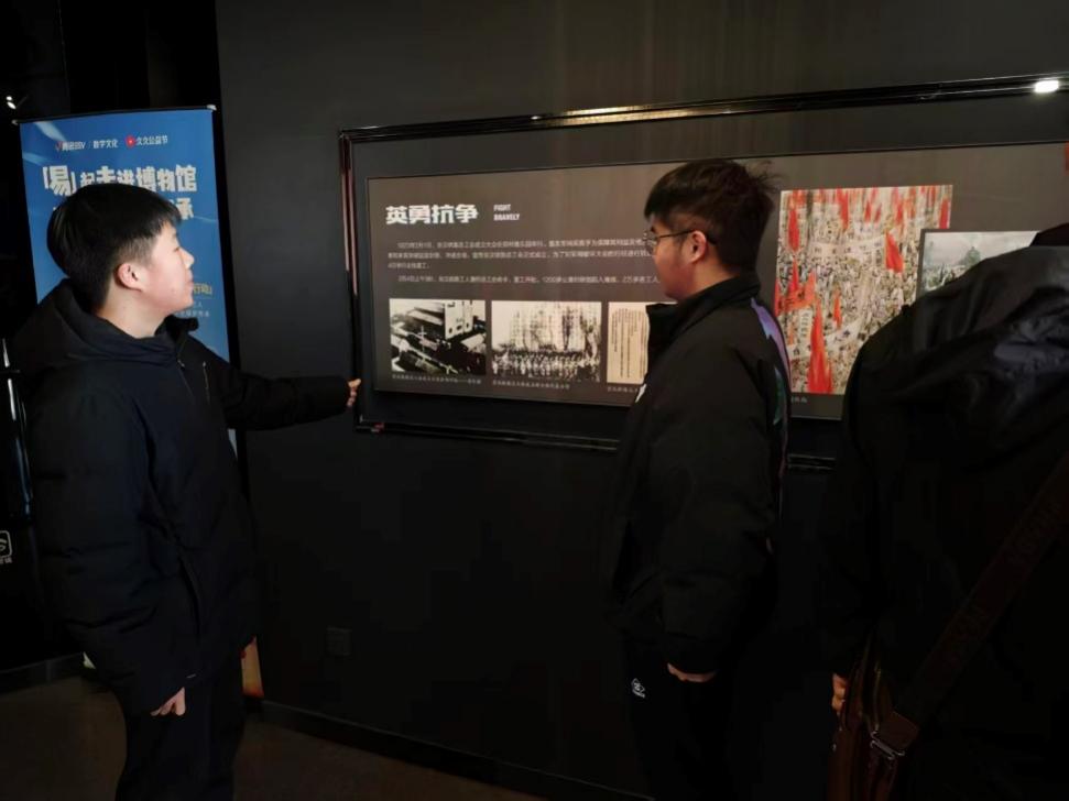 在二七塔的参观环节,团员们自主规划路线,逐层学习展厅文物。从京汉铁路通车后使用的大钟,到工人纠查队员用过的斧子,每一件文物都让大家深刻体会到“坚决彻底、不怕流血牺牲”的革命战斗精神。在互动展项前,团员们主动上前操作,在沉浸式体验中感受历史与现代的交融。
