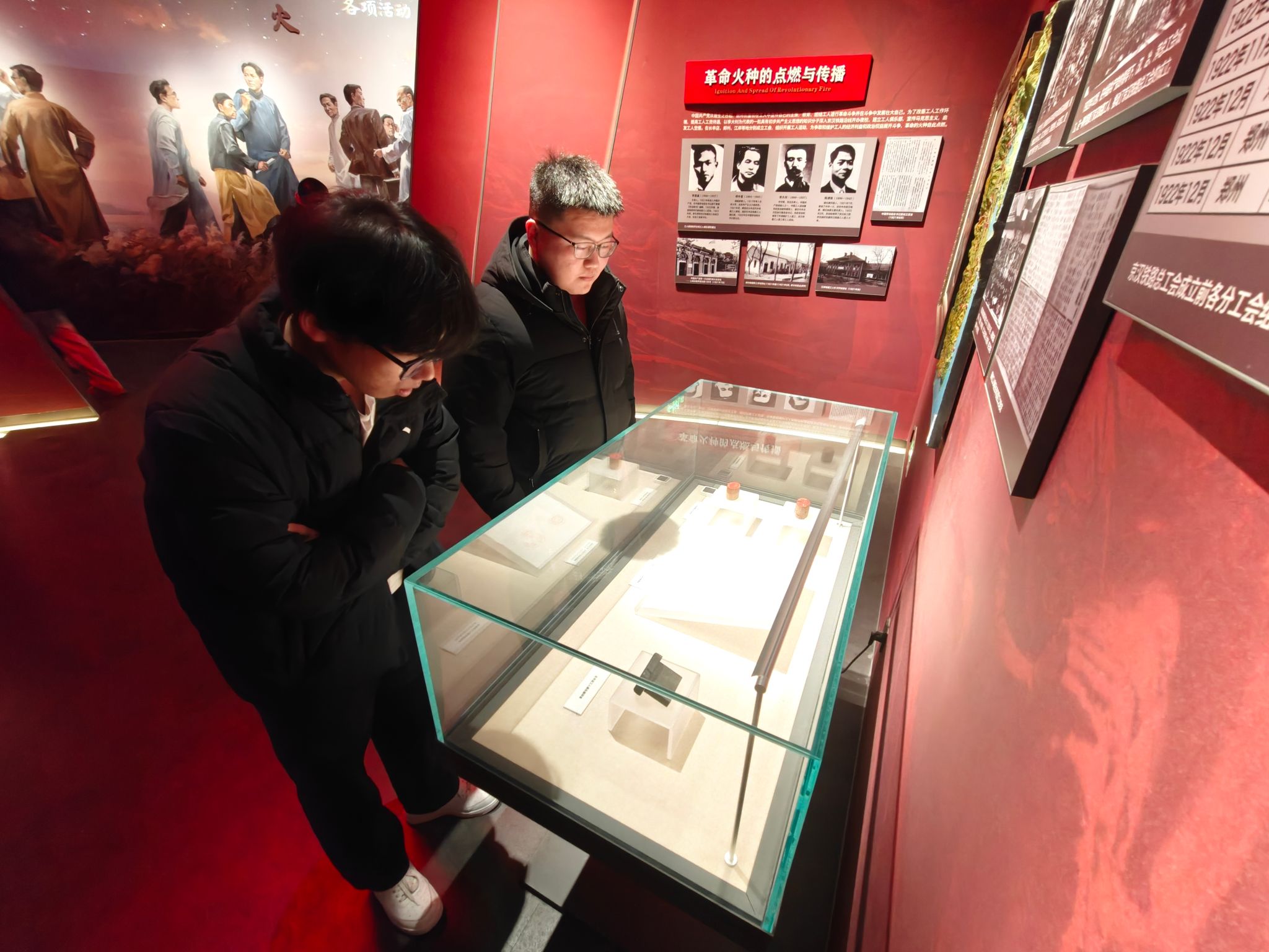 二七纪念堂是为纪念1923年京汉铁路工人大罢工(即“二七大罢工”)而建立的重要历史场馆。在讲解员的引导下,队员们依次参观了“铁路兴建”“工人觉醒”“二七风暴”“精神永续”等展区。通过历史图片、实物展陈与情景复原,团队成员深入了解了京汉铁路工人在中国共产党领导下英勇斗争的光辉历程,感受到工人阶级团结一心、不畏强权的革命气概。