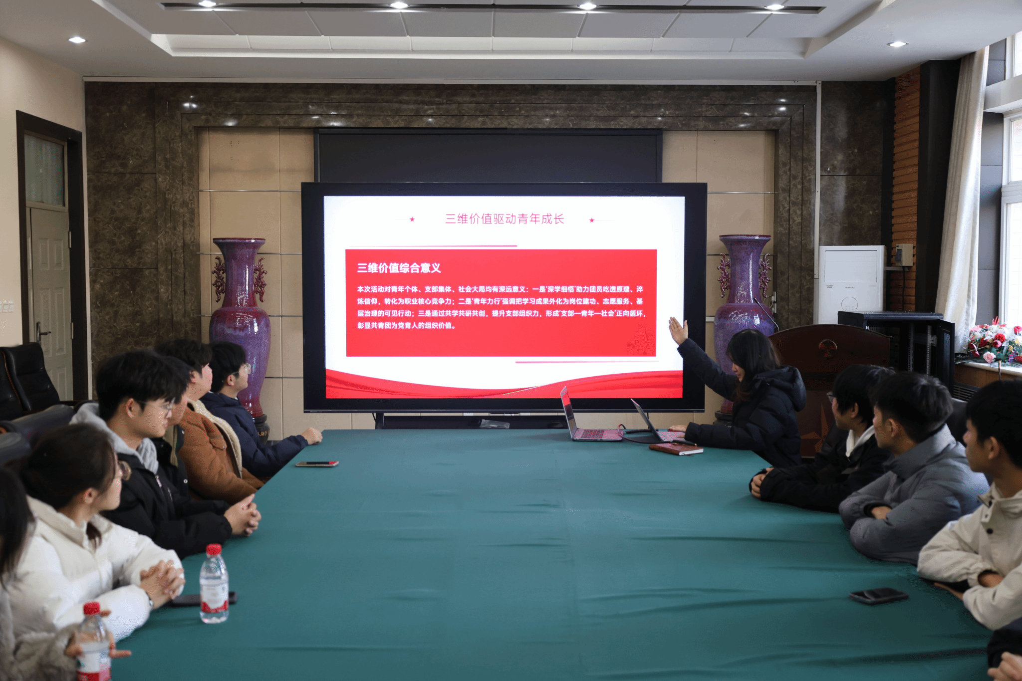2025年12月2日,为进一步强化团学骨干的思想引领与责任担当,发挥骨干带头示范作用,我院以“深学细悟,青年力行”为主题,聚焦各团支部团学骨干群体,在惟学楼6225会议室组织开展专题团日活动。活动由信息学院学生会团副孙蕾全程主持,严格落实“专题学习+特色研讨+实践设想”闭环形式,推动团学骨干先学一步、学深一层,以骨干力量带动全体团员深化学习成效,“骨干引领、全员参与”的青年成长氛围。